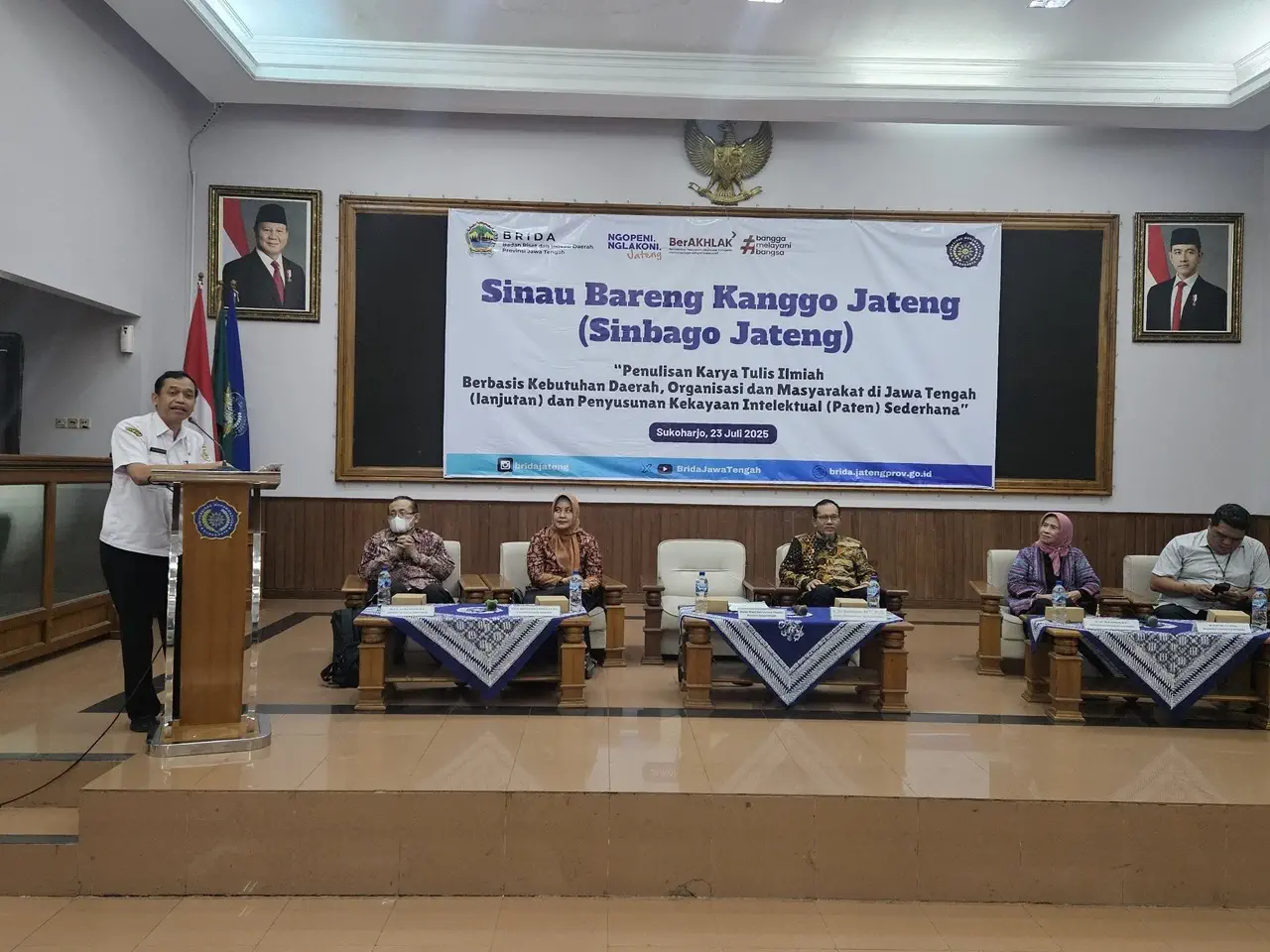 Semarang – Pada tanggal 23 Juli 2025, Dr. AP. Dra. Tri Yuniningsih, M.Si., Ketua Departemen Administrasi Publik FISIP Universitas Diponegoro, turut berkontribusi sebagai narasumber sekaligus pembimbing dalam kegiatan bertajuk “SINBAGO JATENG” (Sinau Bareng Kanggo Jateng) yang diselenggarakan oleh Badan Riset dan Inovasi Daerah (BRIDA) Provinsi Jawa Tengah.