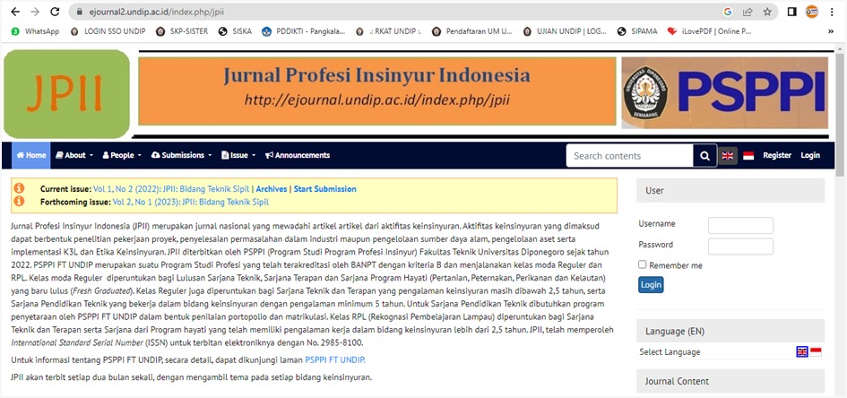 Terkait dengan jurnal ilmiah merupakan persyaratan yang umum bagi kelulusan seorang yang menempuh pendidikan pada program S1, S2, dan S3 maupun profesi. PSPPI FT UNDIP menerbitkan Jurnal Profesi Insinyur Indonesia (JPII) sebagai wadah bagi para Insinyur untuk menularkan hasil karya keinsinuyan sehingga bermanfaat bagi khalayak. JPII dapat diakses pada laman berikut; https://ejournal2.undip.ac.id/index.php/jpii/issue/view/1088