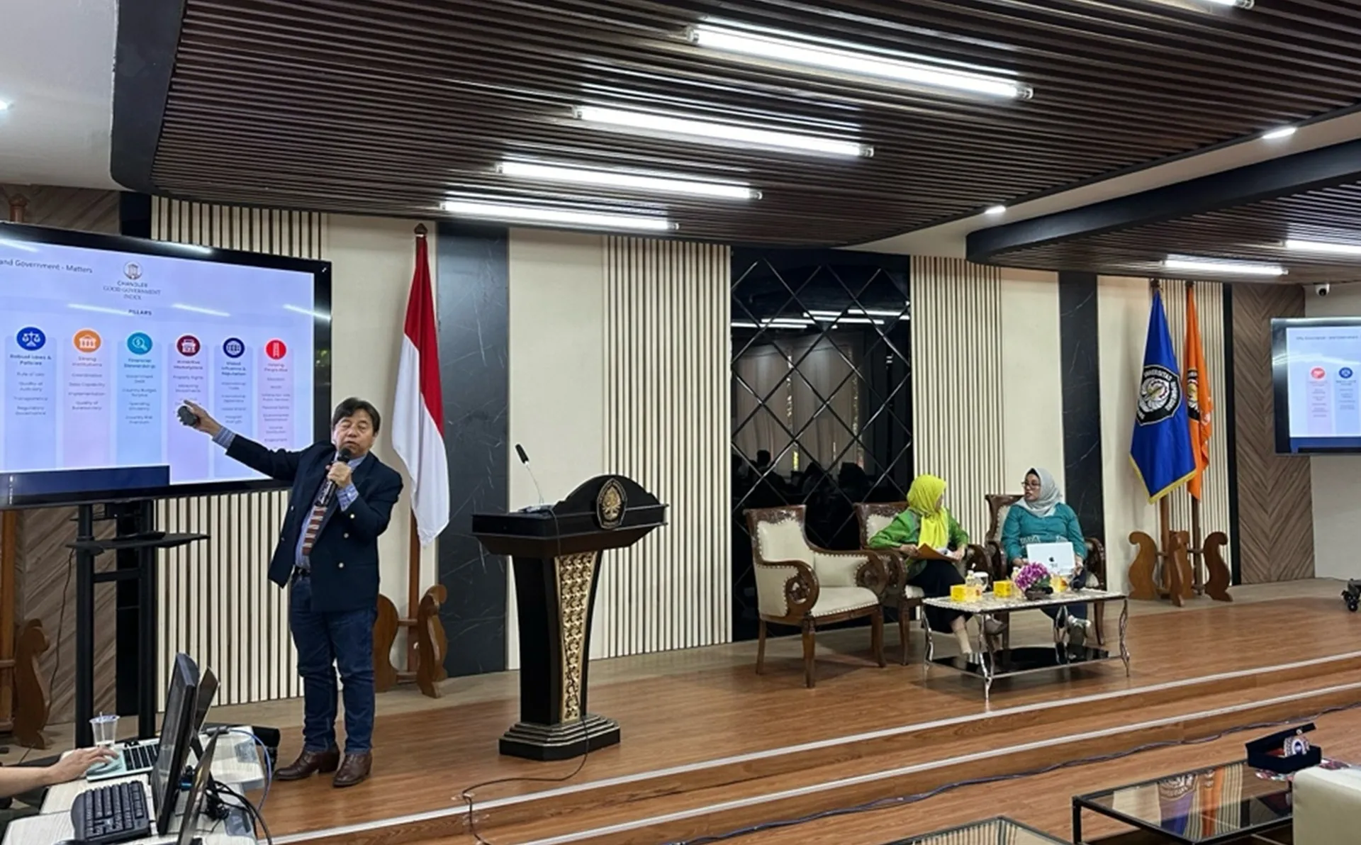 The event was opened with remarks from the Dean of FISIP UNDIP, Dr. Teguh Yuwono, M.Pol.Admin, who expressed his appreciation for the lecture. He stated that international public lectures like this are highly beneficial in broadening students’ perspectives and reinforcing UNDIP’s position in the global academic discourse on public governance. The lecture was led by Prof. Dr. Dra. Hartuti Purnaweni, MPA, Chair of the KBK Public Governance, Department of Public Administration, FISIP UNDIP, together with a team of lecturers, including Dr. Amni Zarkasyi Rahman, S.AP., M.Si.; Dra. Maesaroh, M.Si.; Junjung Sahala Tua Manik, S.Sos., M.A.P.; Nilam Adini Rakhma, M.A.P.; and Azaria Eda Pradana, S.AP., M.A.P.